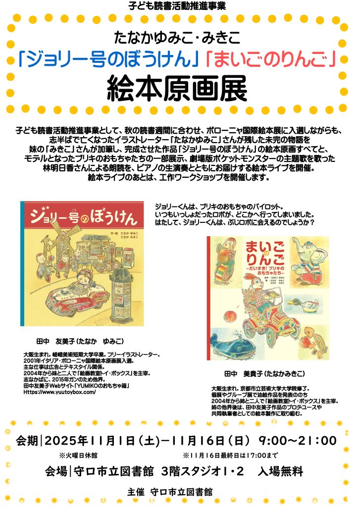 たなかゆみこ・みきこ『ジョリー号のぼうけん』『まいごのりんご』絵本原画展開催のお知らせ