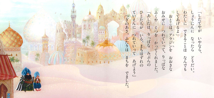 細密なタッチで描く、少年と魔法のランプのふしぎなものがたり