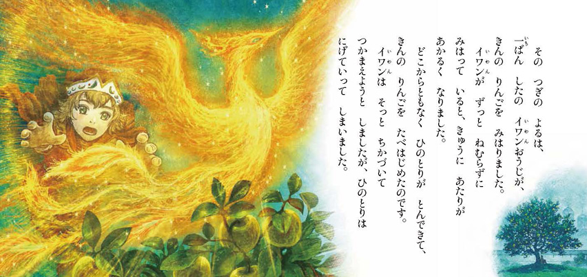 お城の庭にある金のりんごを食べてしまう火の鳥。跡継ぎの座をかけて、3人の王子が火の鳥を捕まえる旅に出ます。一番下の王子、イワンは大冒険の末についに火の鳥を捕まえますが……。