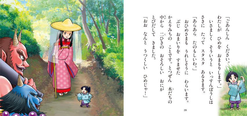 おじいさん、おばあさんに愛されて元気にかしこく育った?!いっすんぼうし……のはずが、いつまでたっても大きくなりません。