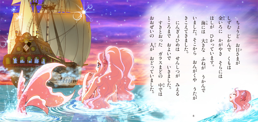 うつくしい人魚姫は、15歳になった日、初めて海の上に顔を出し、王子さまに会いました。人間になりたい、王子さまのそばにいたい…。